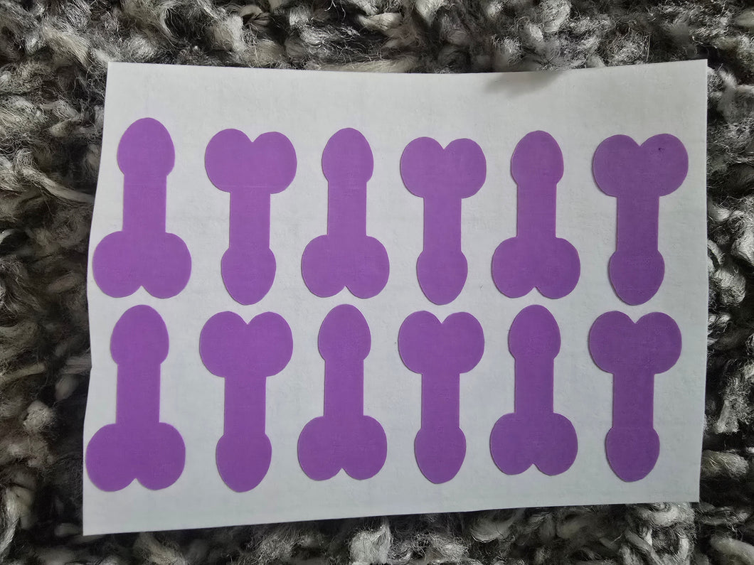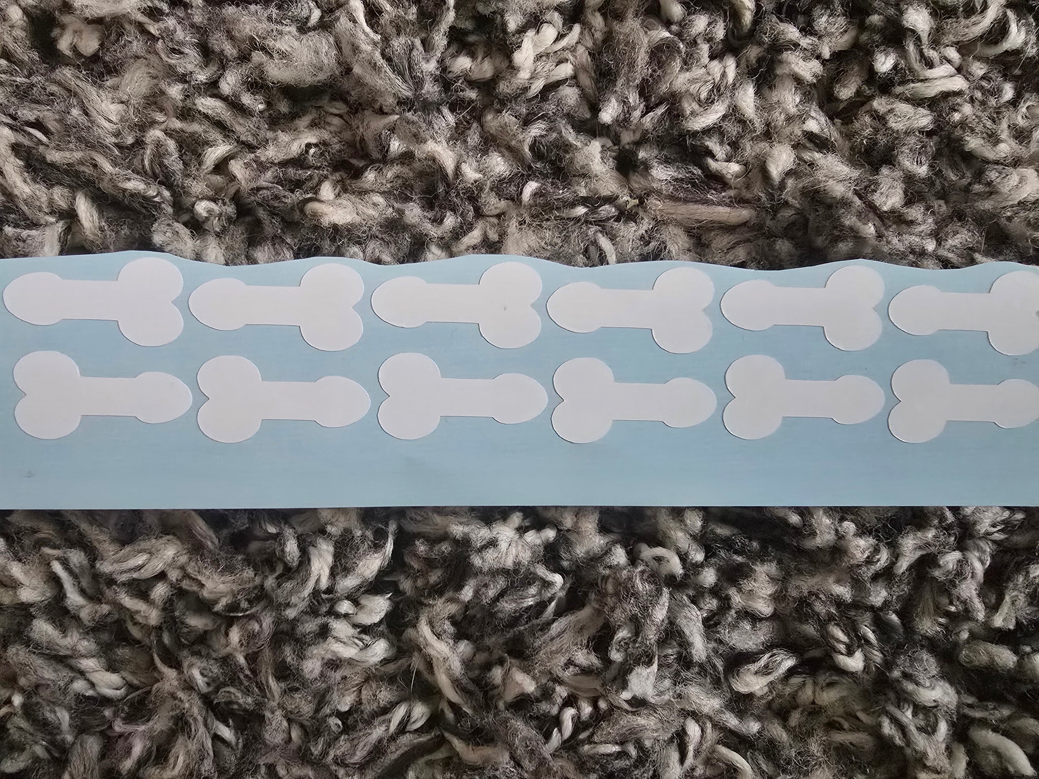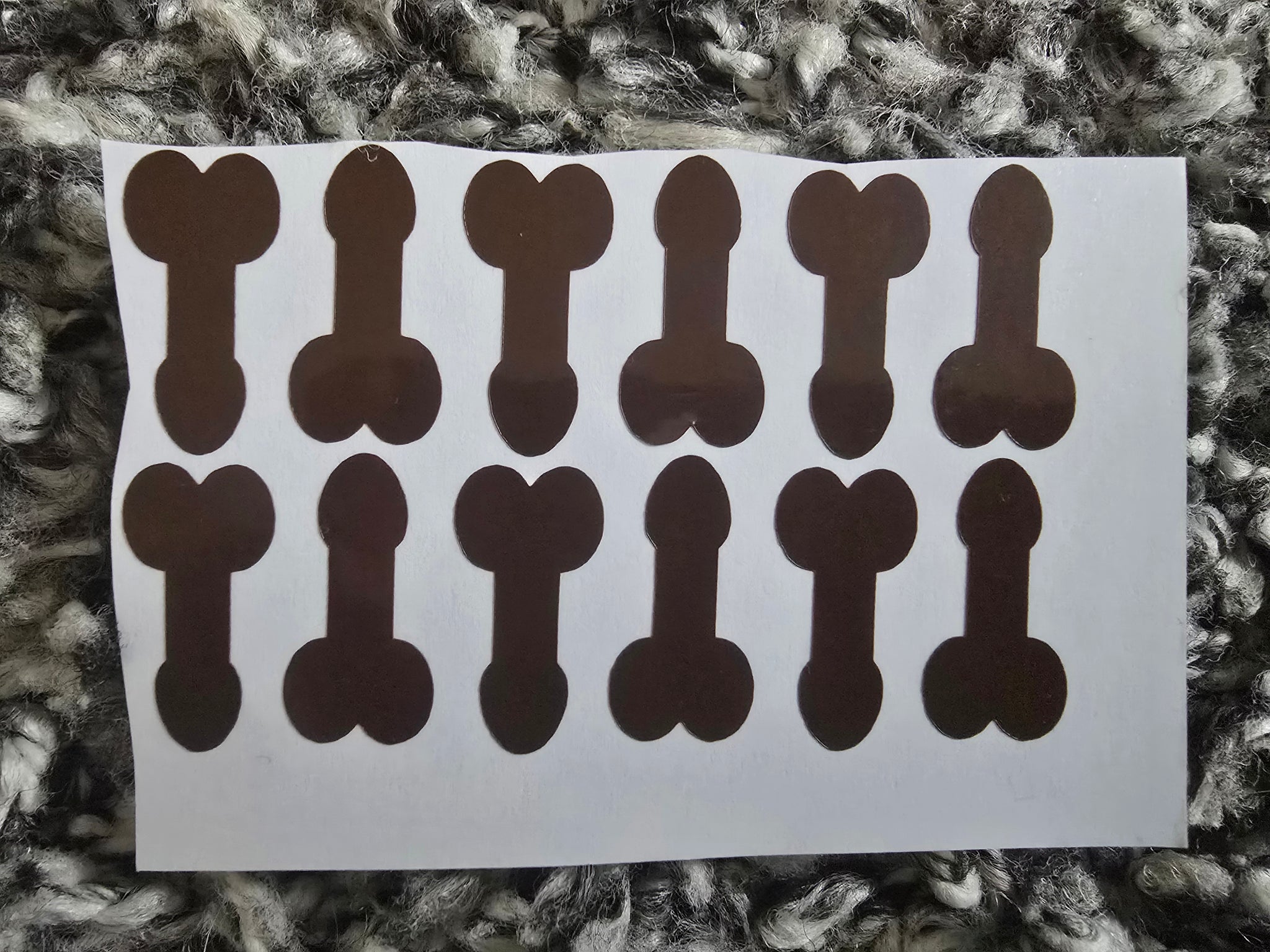 Set of 12 1 inch Dick Stickers. Great fun to quickly peel and stick everywhere you go.